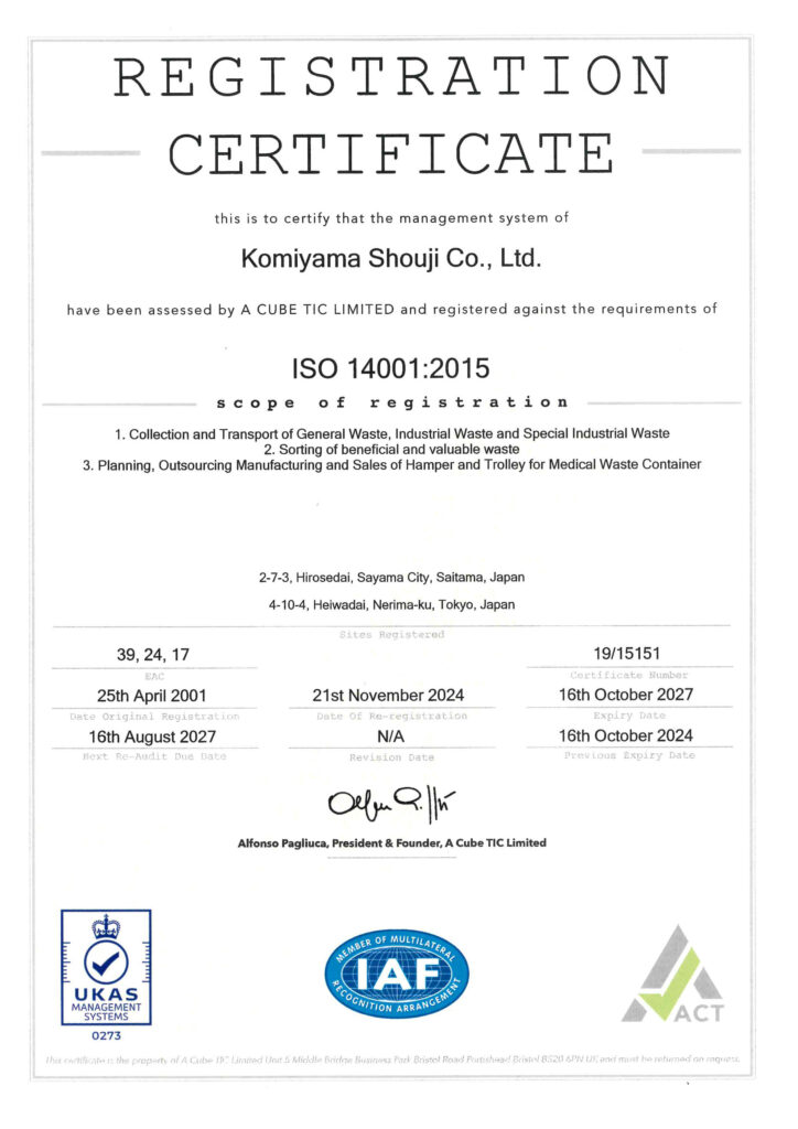 環境ISO14001認証取得