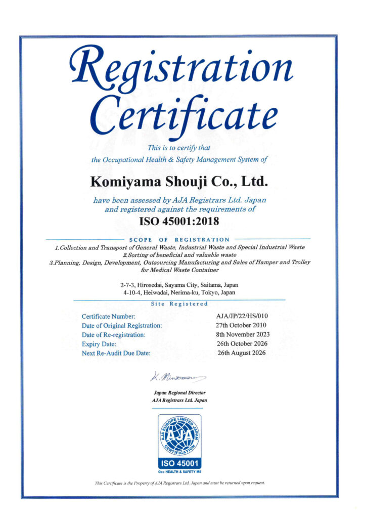 労働安全衛生ISO45001認証取得