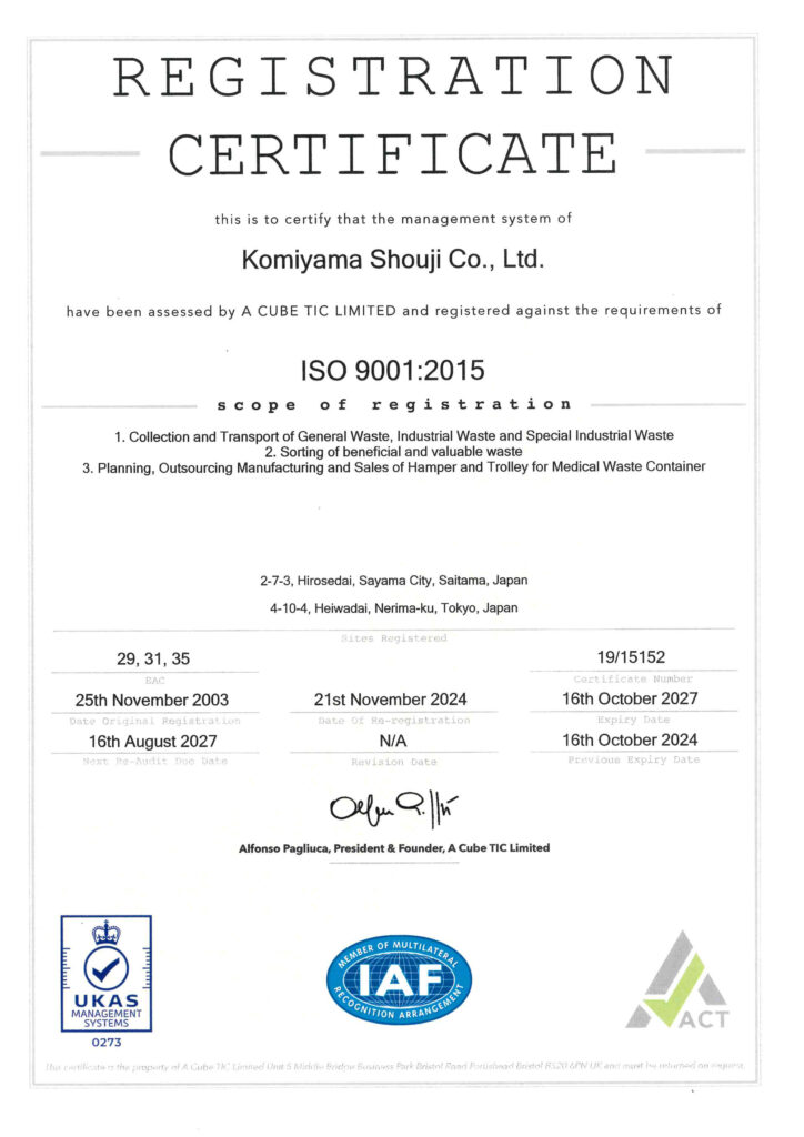 品質ISO 9001認証取得